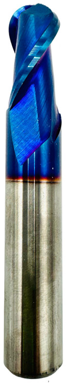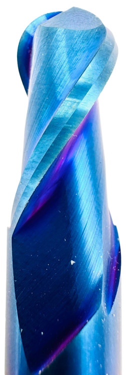 ماده قطعه کار تخصصی فولادهای ابزار سختکاری شده ($\text{D2, H13, P20}$)، فولادهای پرسرعت ($\text{HSS}$)، و آلیاژهایی با سختی بالا (تا $\text{65 HRC}$).کاربرد برش قالبسازی، مدلسازی، پرداخت نهایی سطوح سهبعدی (3D Finishing) و ماشینکاری دقیق حفرهها.نقاط قوت مقاومت در برابر سایش حرارتی: پوشش نانو آبی عمر ابزار را در دمای بالا به طور چشمگیری افزایش میدهد. کیفیت سطح فوقالعاده: لبه برش تیز و طراحی بال نوز برای پرداخت سطوح آینهای در فولاد سخت مناسب است. دقت بالا: برای حفظ تلورانسهای بسیار بسته در قالبسازی حیاتی است.نقاط ضعف خشنکاری: این ابزار برای خشنکاری طراحی نشده است؛ برای آن باید از فرزهای سرتخت یا توروس قویتر استفاده شود. قیمت: ابزارهای $\text{HRC65}$ با پوشش نانو قیمت بالاتری نسبت به ابزارهای عمومی دارند.