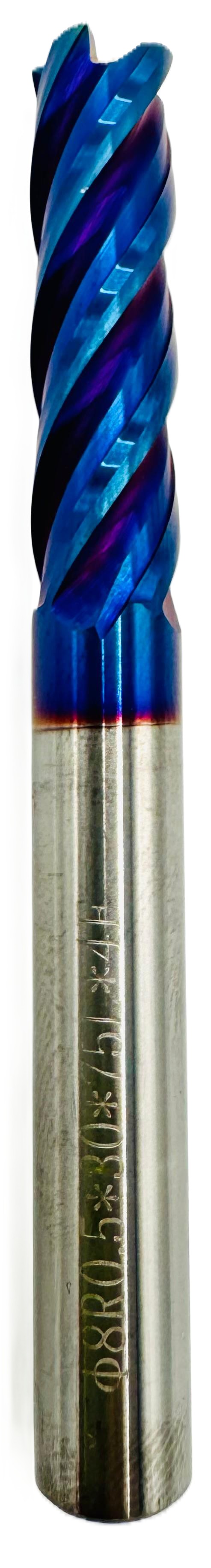 فرز انگشتی گوشه گرد / توروس (Corner Radius / Torus End Mill) 8R0.5 X 30 X 75L X 4T HRC65
