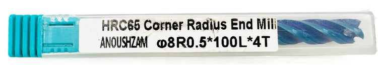 فرز انگشتی گوشه گرد / توروس (Corner Radius / Torus End Mill) 8R0.5 X 100L X 4T HRC65