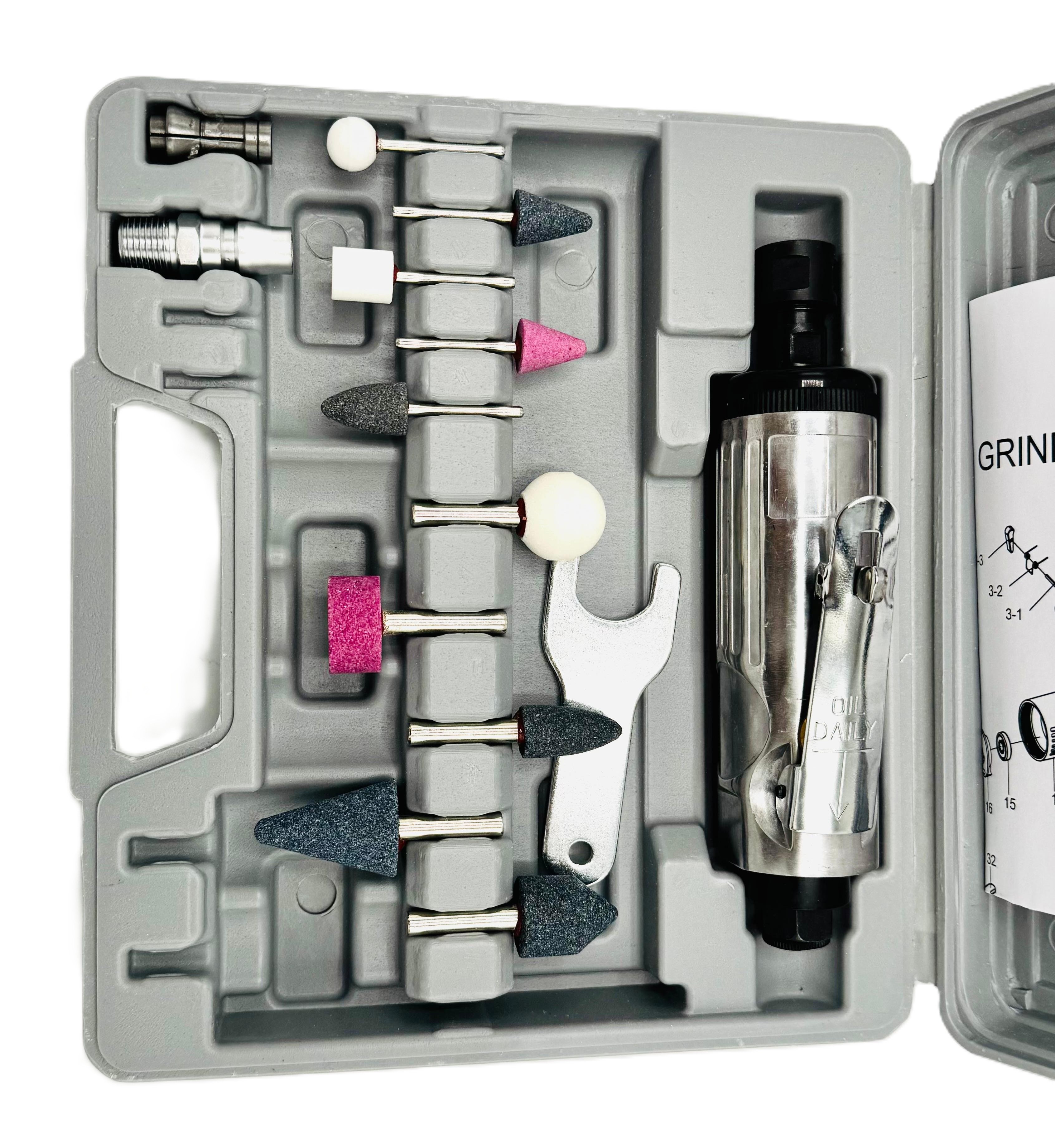 ابزار اصلی (Tool): یک عدد سنگ انگشتی بادی $\text{22,000 rpm}$ (مدل مشابه $\text{WG-201}$ یا $\text{WG-202}$)