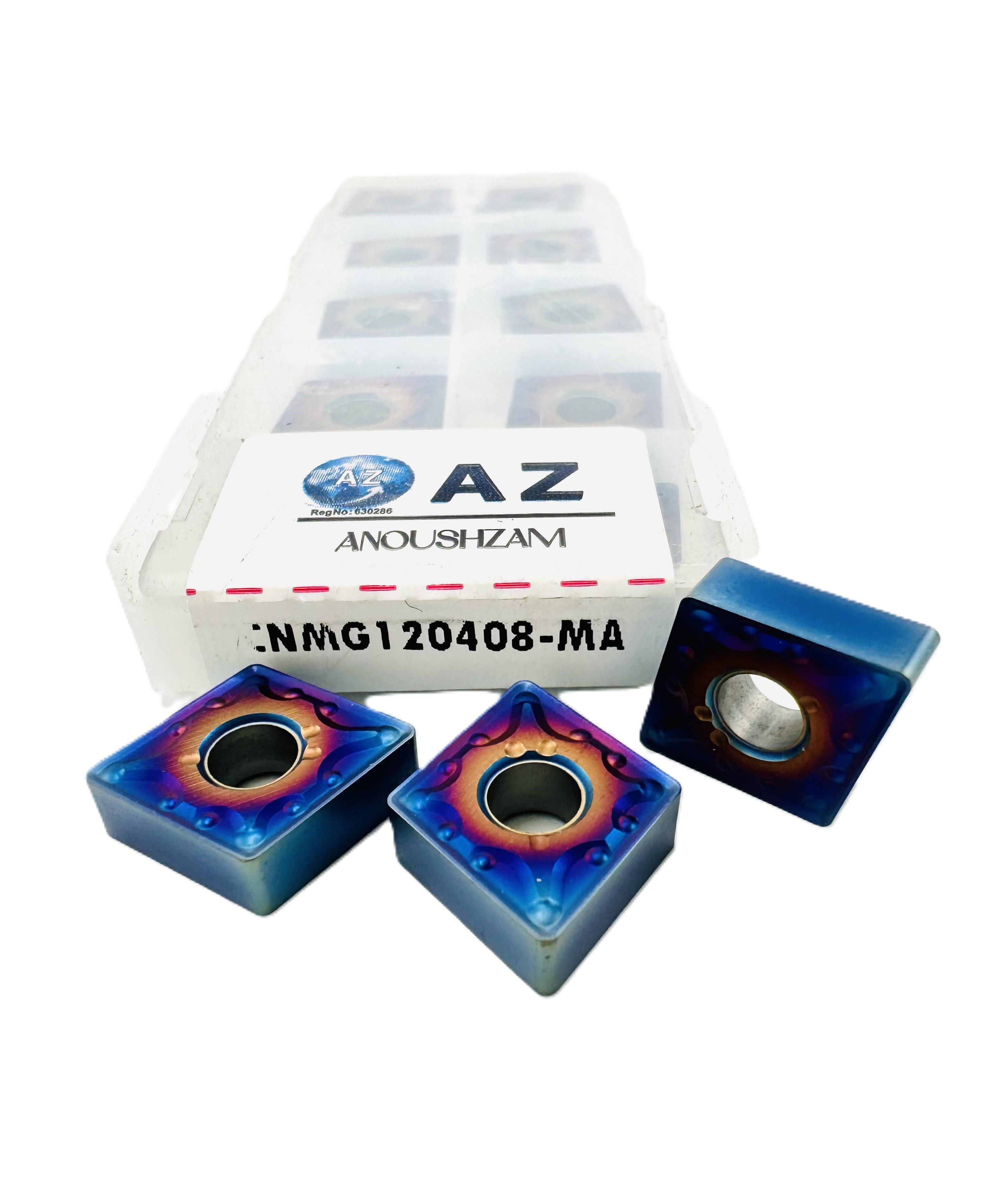 مزایای کلیدی پایداری بالا: هندسه منفی $\text{CNMG}$ برای برشهای ناپیوسته، خشنکاری سبک و شرایط ارتعاش زیاد بسیار مناسب و مستحکم است. چندمنظوره $\text{P/M/K}$: پوشش $\text{CVD}$ گرید $\text{AZ8821}$ قابلیت عملکرد خوبی در سه گروه اصلی مواد در نیمهپرداخت دارد. اقتصادی و چندلبه: چهار لبه برش فعال، عمر اقتصادی بالایی را فراهم میکند.نکات قابل توجه نیروی برش: هندسه منفی نیروی برش بالاتری نسبت به اینسرتهای مثبت ایجاد میکند که نیازمند ماشین قویتر است. خشنکاری بسیار سنگین: شکستتراشه $\text{MA}$ برای بارهای بسیار سنگین و عمق برشهای بسیار زیاد مناسب نیست و برای این کار باید از شکستتراشههای قویتر استفاده کرد.