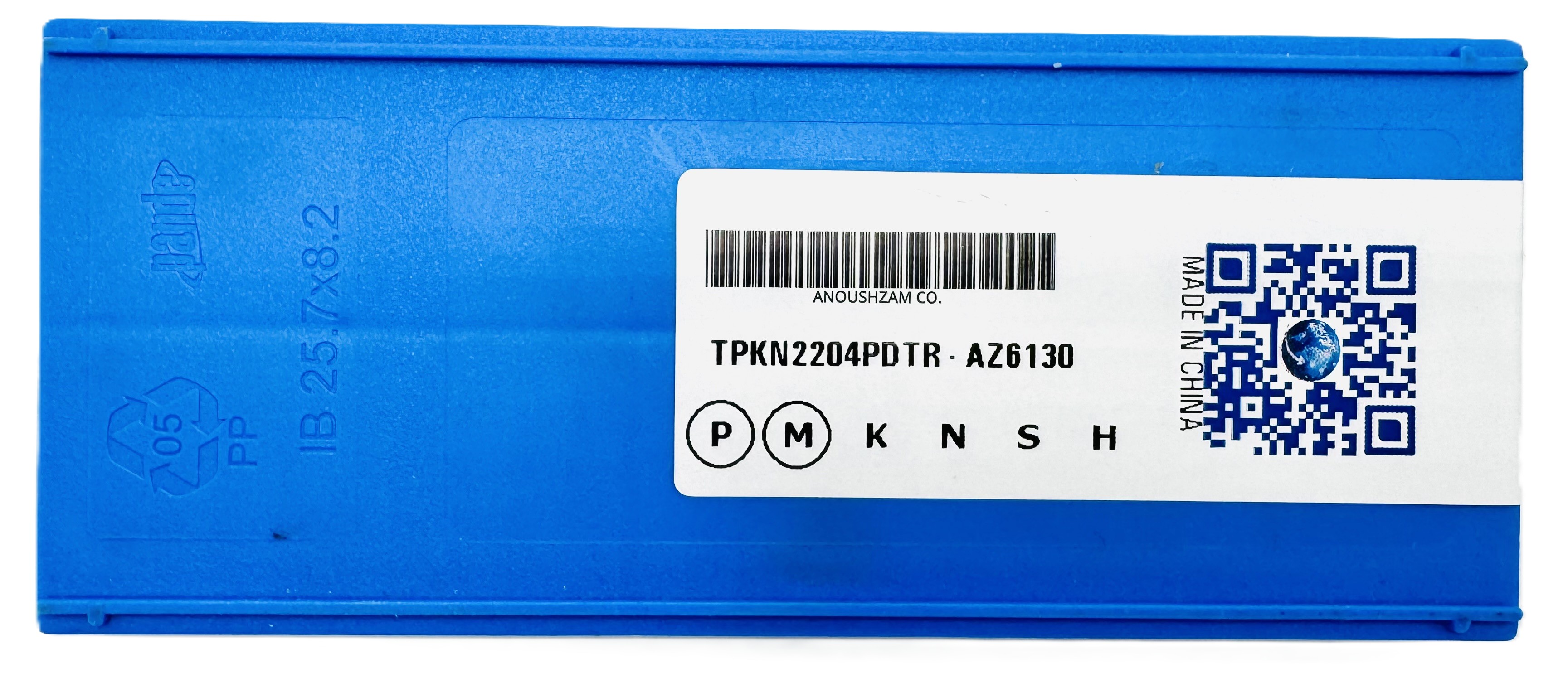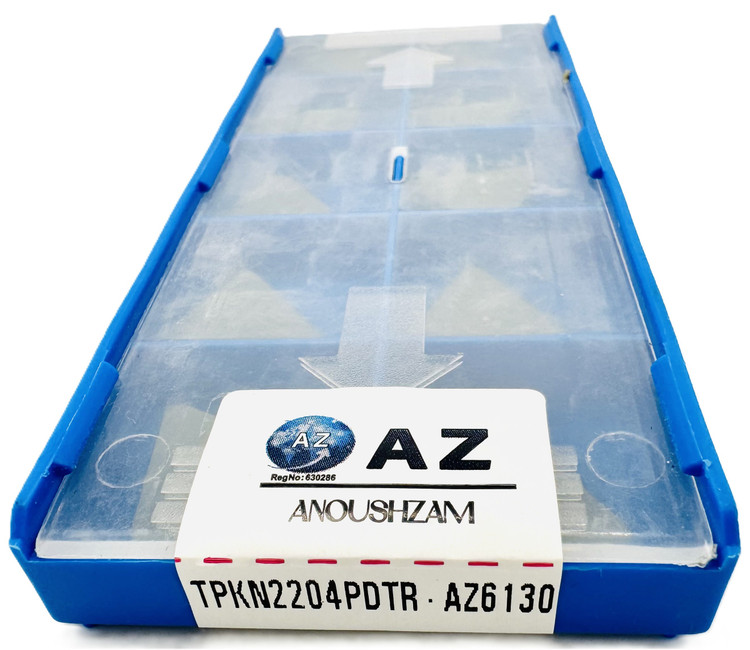 مزایای کلیدی نرخ برادهبرداری بالا: هندسه TPKN و ابعاد بزرگ $22$ اینسرت، امکان استفاده از تغذیه و عمق برش بالا را در خشنکاری فراهم میکند. استحکام بالا: لبههای قوی R0.8 به خوبی از اینسرت در برابر برشهای ناپیوسته و ناپایدار محافظت میکنند. چندمنظوره خشنکاری: گرید AZ6130 با رنگ سیاه، یک ابزار عمومی مقاوم برای فولاد و استیل است.نکات قابل توجه کیفیت سطح: این اینسرت در درجه اول برای خشنکاری طراحی شده و برای دستیابی به صافی سطح بسیار بالا نیاز به عملیات پرداخت بعدی است. فرزکاری شانهای: اگرچه میتواند شانههای $\text{90}^\circ$ ایجاد کند، اما در مقایسه با اینسرتهای تخصصی APKT، لبههای برش آن بهینهسازی کمتری برای دقت شانهها دارد.