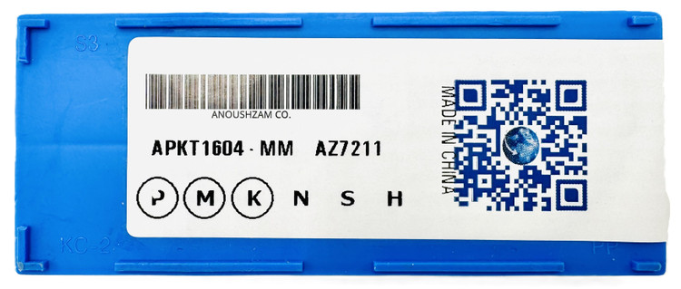 | توضیحات متا (Meta) | خرید اینسرت APKT1604-MM برند AZ از کمپانی انوش زم. مجهز به گرید PVD تخصصی AZ7211 جهت فرزکاری ایمن و با کیفیت انواع فولاد، استیل و چدن. ایدهآل برای شیارزنی و بغلتراشی. |