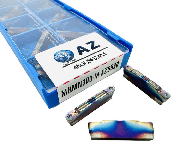 | توضیحات متا (Meta) | خرید اینسرت MRMN300-M برند AZ. مجهز به گرید ۶۵۳۰ و پوشش رنگارنگ جهت کپیتراشی و شیارزنی در متریالهای فوقسخت تا ۶۰ راکول با کیفیت سطح فوقالعاده. |